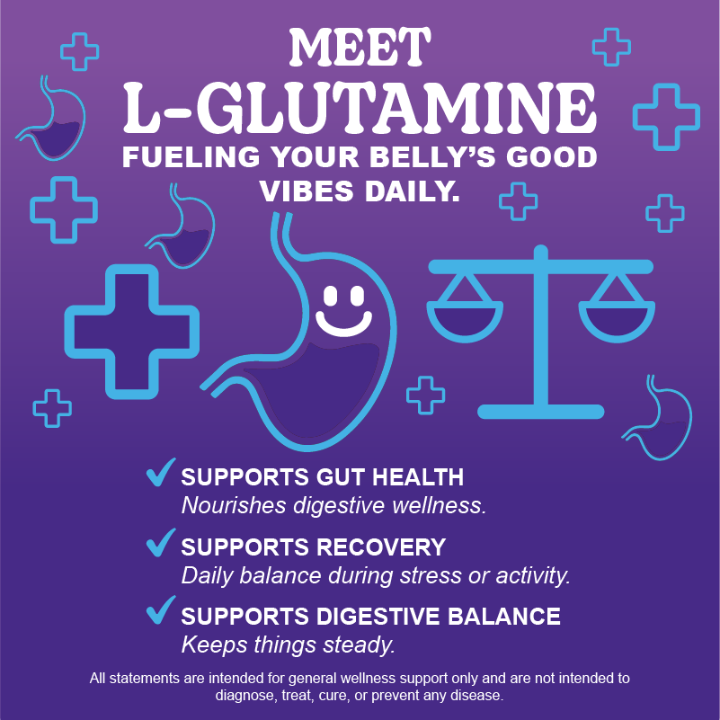 Juicy grape soda with a gut-loving twist. L-Glutamine soothes. Quercetin supports. Your taste buds celebrate.
